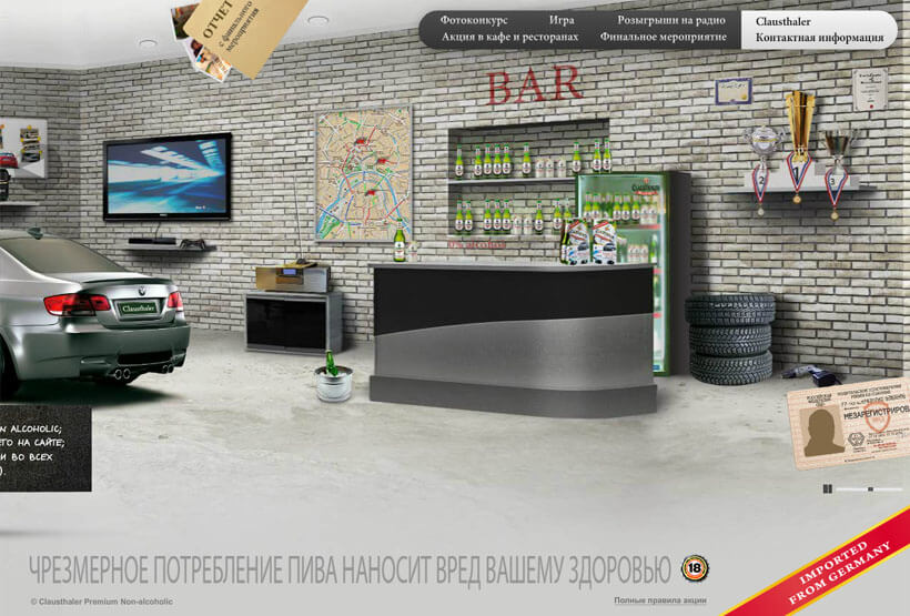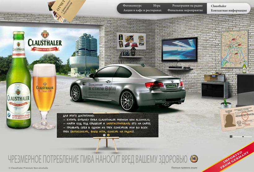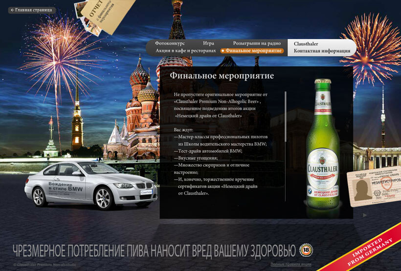 - Информационные страницы (Акция в кафе и ресторанах, История Clausthaler и т.д.)