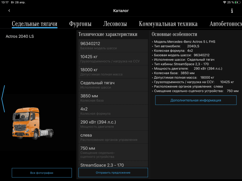 - Каталог грузовых автомобилей, который включает в себя 3D модели, характеристики, особенности данного грузовика, а так же полную комплектацию